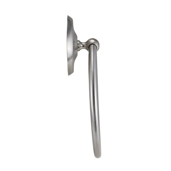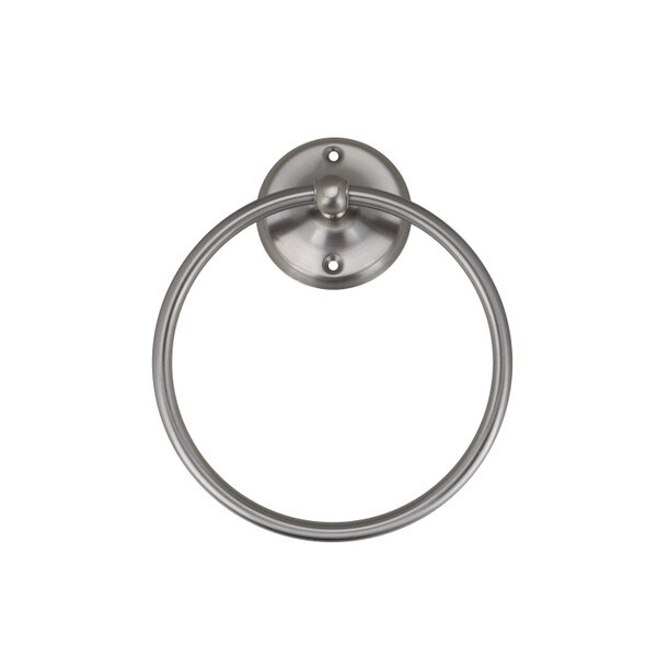 The Creative Products Group Bathroom Towel Ring in Brushed Satin Nickel, the perfect accessory to keep your towels organized and easily accessible in any space, whether it's your home, RV, or mobile home. With its lightweight design, this towel ring keeps your towels neatly hung and within reach without adding unnecessary bulk or weight to your walls.