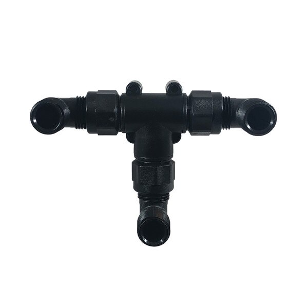 The B&B Molders Diverter Valve #08 is designed to function with your RV's Nautilus System. Crafted in sleek black and featuring a 1/2" swivel fitting connections, this valve ensures seamless operation. Compatible with Nautilus P1 and P2.5 handles (handles not included).