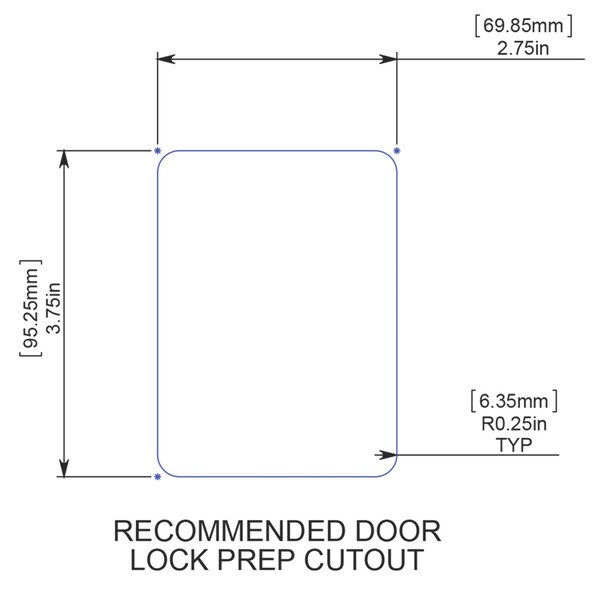 - Same cut out as standard Travel Trailer Locks (3.75 T x 2.75 W)