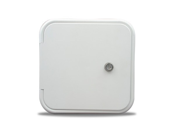 Equipped with a replaceable door and a Key Lock featuring a "Global Pro" interchangeable automotive type cylinder, this hatch offers enhanced security and convenience. The lock is "key alike ready," allowing you to match it with your entry door or other compartment locks for added convenience.