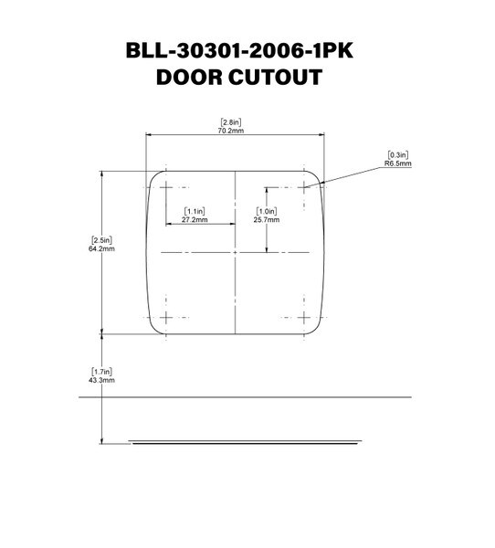 - Fits a 2.8" Wide x 2.5" Tall Door Cutout (Up to 1.7" from the bottom of the door edge depending on door and strike used)